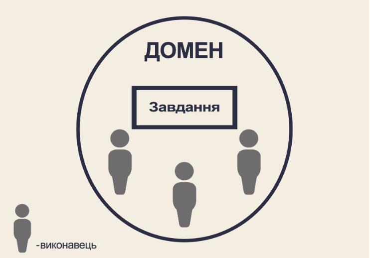 Будь-яка організація може бути представлена у вигляді домену, усі її управлінські рішення — у вигляді завдань, а всі члени такої організації будуть виконавцями цих завдань (рішень) (див. Рис. 2).
