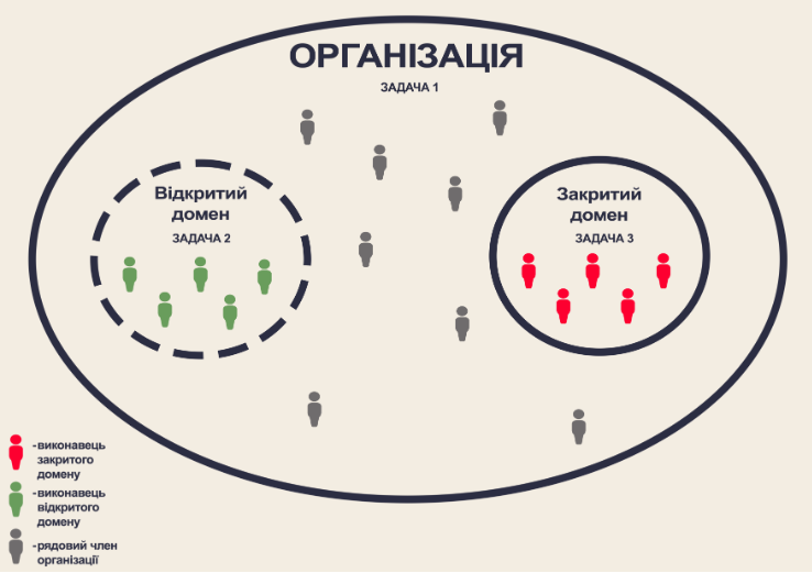 Задача 2 — це завдання відкритого домену. У його формуванні можуть брати участь всі члени організації. Але його виконавцями є тільки члени відкритого домену.